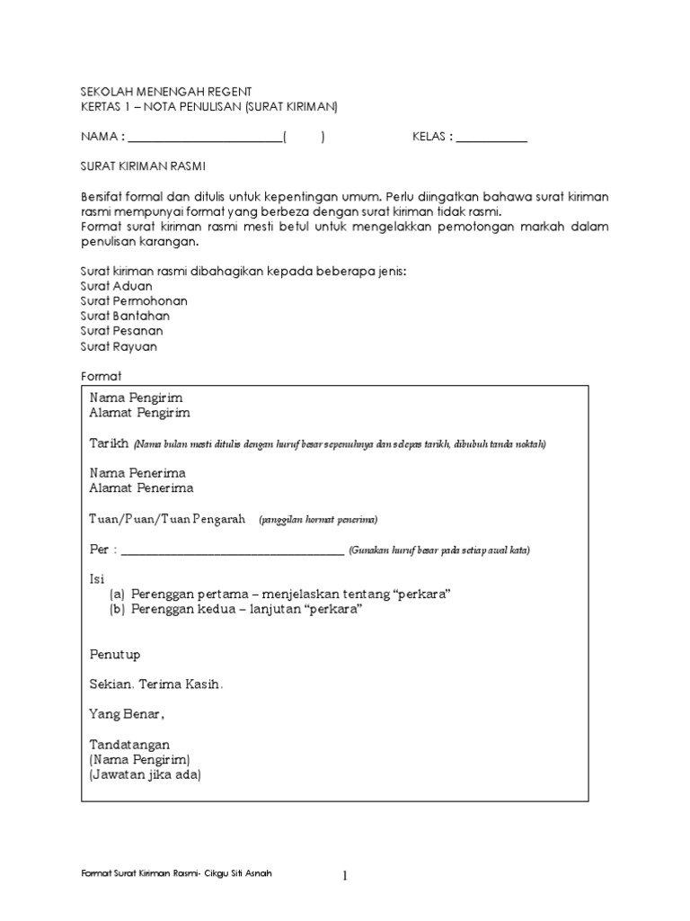 Format Surat Kiriman Tidak Rasmi Tahun 4 Letter 7saudara Com